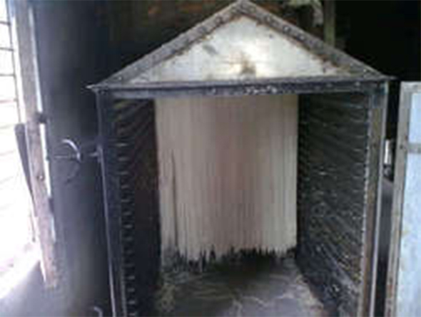 Koyka group noodle dryer is fabricated out of rigid angle iron frame with double walled panels insulated with best quality compressed fiber glass and with a rigid door fitted with strong hinges and best chosen locking arrangement. A control panel is fixed in front of the oven to facilitate the operation easily. It has a large working space and is available, manufacturing from mild steel and in good finishing outside with automotive color and inside painted with heat resist paint to resist temperature up to 400 degree, in standard model. A highly effective recirculation of air system is provided in the noodle dryer. The system is designed so that the materials at the top and the bottom dry simultaneously. Uniform air circulation, controlled temperature, sturdy construction and large working space are the valuables of the oven which is suitably designed to cover wide temperature range, loading and unloading is faster and simple. In higher capacities trays trolley rolls in and out of the chamber. For continuous operation a spare trolley can be had for loading while the drying cycle is taking place.