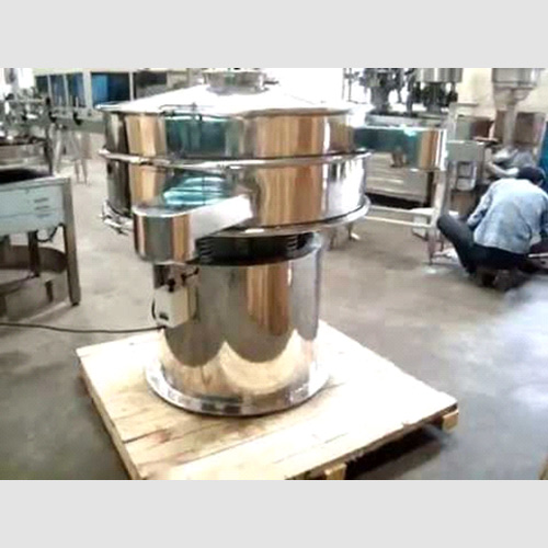 The unit consist of Specially designed vibratory motor to run on 400 / 440V, suitable HP, 3 phase, 50 cycles electric supply ,with adjustable eccentric weights at the top and bottom of the motor shafts mounted vertically at the centre of the base plate of screening unit. Screening unit consists of SS 304 screen sandwiched between SS 304 hopper and bowl with the help of special clamp with gasket. Rugged Springs placed over the circular motor base amplify the vibration and at the same time restrict the vibration from being transferred to the powder.