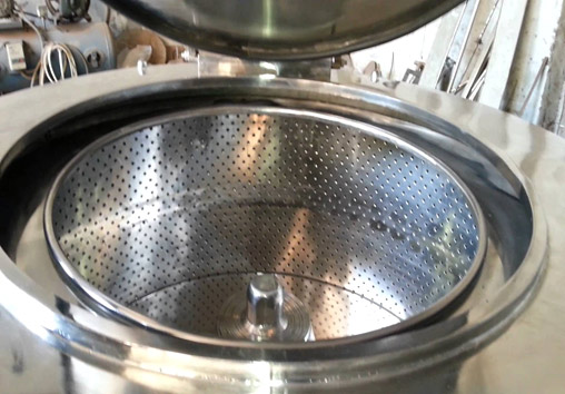 Washed potato / banana or fried namkeen poured into the drum of centrifuge hydro extractor from top, the inner stainless steel perforated round holes screen removable drum rotates at the high speed. Water / oil will remove from potato / banana or namkeen by centrifuge hydro extractor. Detach the drum and remove semi dry material from drum as per our standard supply, but now due to tilting type centrifugal hydro extractor no need to remove rotated drum just push the lever and tilt the drum thus dried material came out.(tilting up to 180° ) the centrifuge hydro extractor drum rotated by suitable electric motor