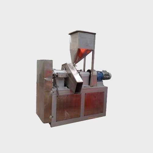 Prepare the desired amount of dough either with help of Jas flour kneading or mixing machine. or manual. This dough is passing through namkeen extruder machine and long rods of sev, bhujia, gathiya come out from the extruder with fitted die which are directly placed in the frying Pan for Frying. After that kept out from frying pan and place it in to the oil extractor to remove exceed oil. ( Please note that you can use continuous fryer for larger and low fat production).