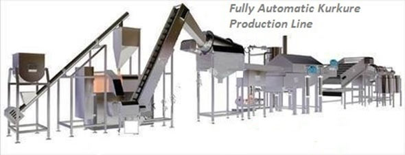 Kurkure are extruded snacks, very crunchy and great in taste. Kurkure are made by extrusion process. The kurkure corn meal is moisturized in the flour mixer with water and fed to the rotary die extruder. In the extruder, due to excess heat and pressure from the screws the meal gets heated and the moisture content gets reduced. The meal passed through the die and gets cut by the cutting knifes into required lengths. The kurkure are fried in cooking oil and then cooled before flavoring. Seasoning is sprayed on the kurkure to improve their taste.Machines involved in making kurkure: