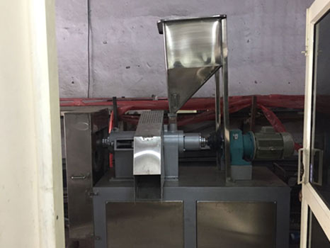 We manufactuer kurkure extruder where in we carry the process of gelatinization in a concentric cavity between two dye, one rotary with 3 blades (fingers) plus grooves, and the other one with grooves only. The action of these blades on the rotating head creates the necessary condition of pressure and heat to achieve gelatinization of the raw material. Product is expanded and formed in a narrow gap between the two plates. Blades affixed to a circular knife support ring mounted on the outer edge of the rotor cuts to the desired size. Constructed with painted mild steel, 2" tubular frame, mild steel painted belt guard, stainless steel hopper, stainless steel guard at product discharge and painted castings.