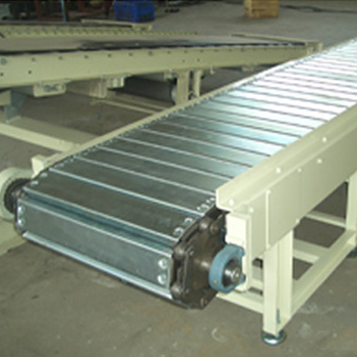 Slat Conveyors are used in horizontal conditions and operating at relatively slow speeds. They are generally used to move items that are not typically conveyable on rollers or belts, due to an irregular shape or bottom condition. They can also be used in assembly operations by modifying the slats to accommodate assembly fixtures.